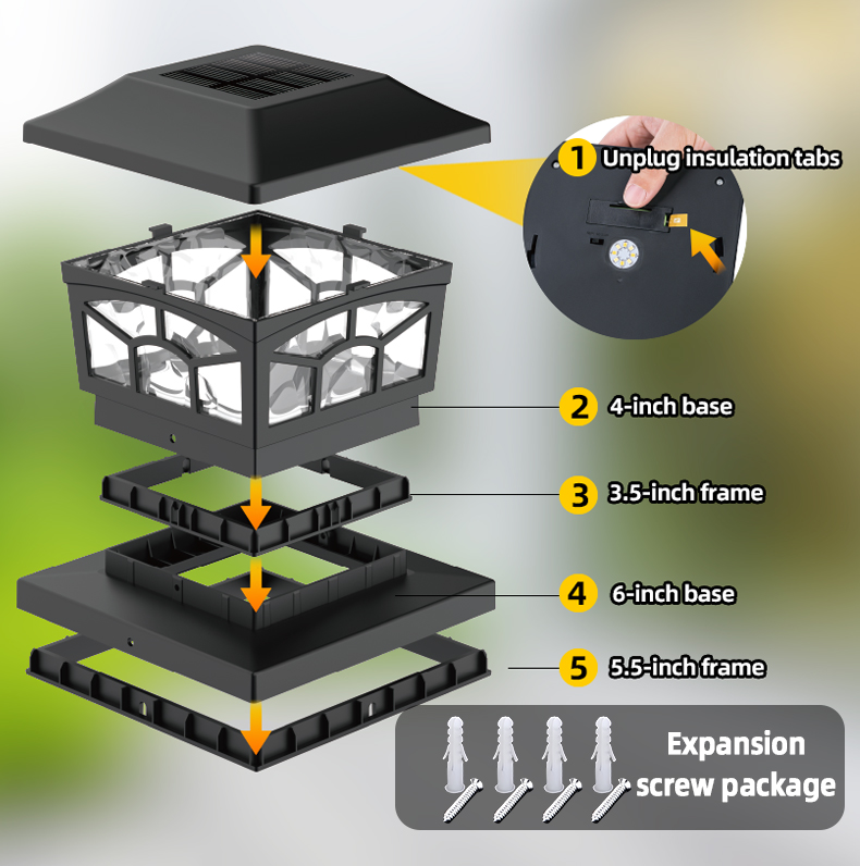 די דעטאַילס פון אונדזער צווייענדיק מאָדע סאָלאַר פּאָסט קאַפּ ליכט זונ גאַרדאַן ליכט: