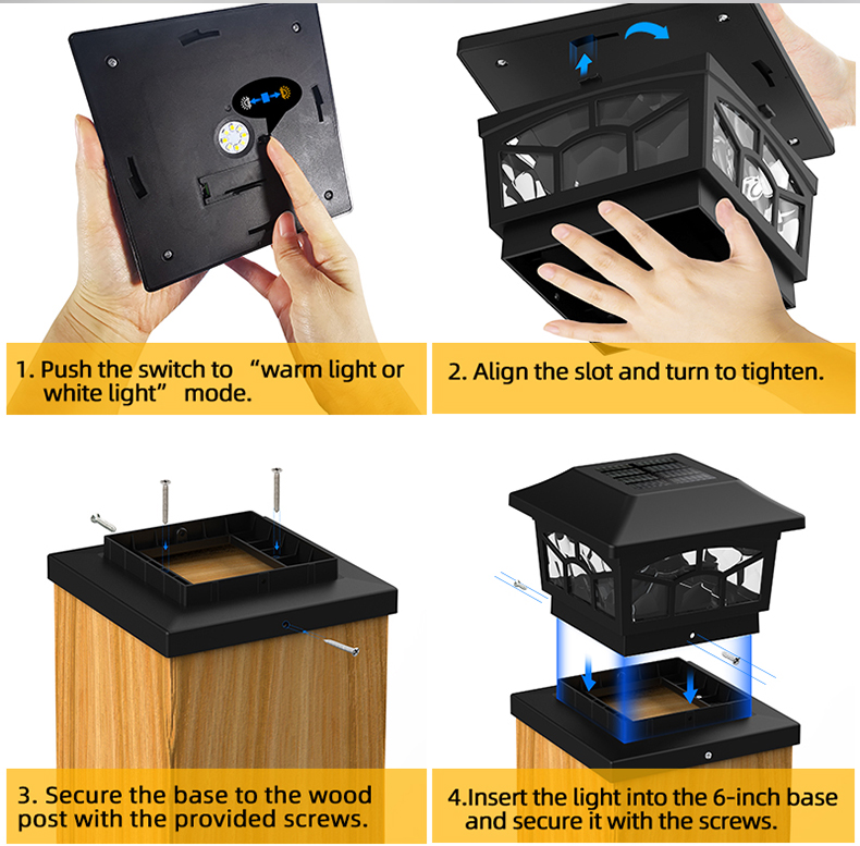 Landsign's Dual Mode Solar Post Cap Light Solar Garden Light האט אַן ינטעליגענט ליכט-שפּירעוודיק סיסטעם, דרויסנדיק שטאַרק וואָטערפּרוף און גרינג צו ינסטאַלירן, פּאַסיק פֿאַר הויף באַפּוצונג, גאָרטן, אאז"ו ו. צוויי לייטינג מאָדעס, איר קענען פריי קלייַבן דיין באַליבסטע לייטינג.